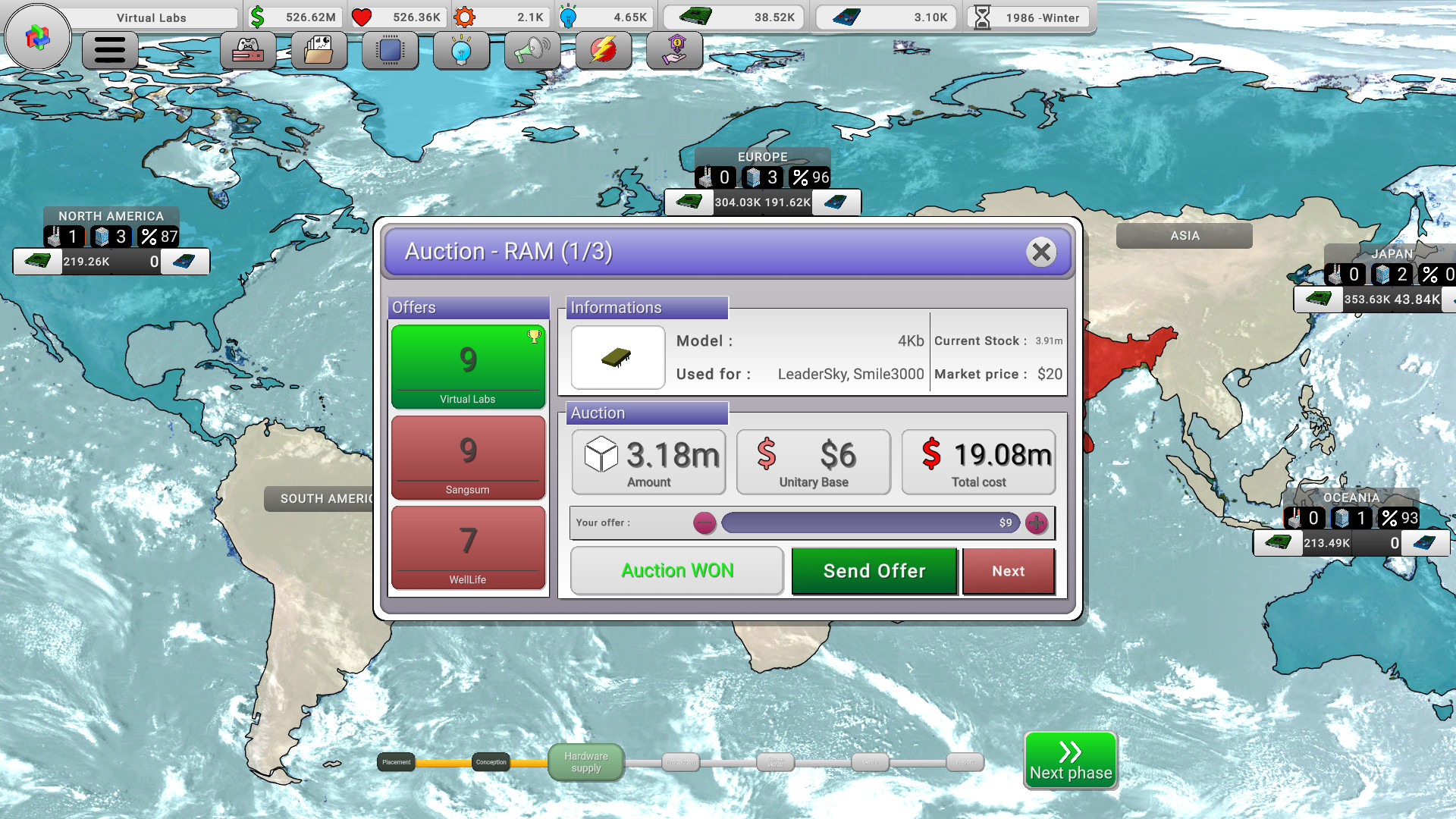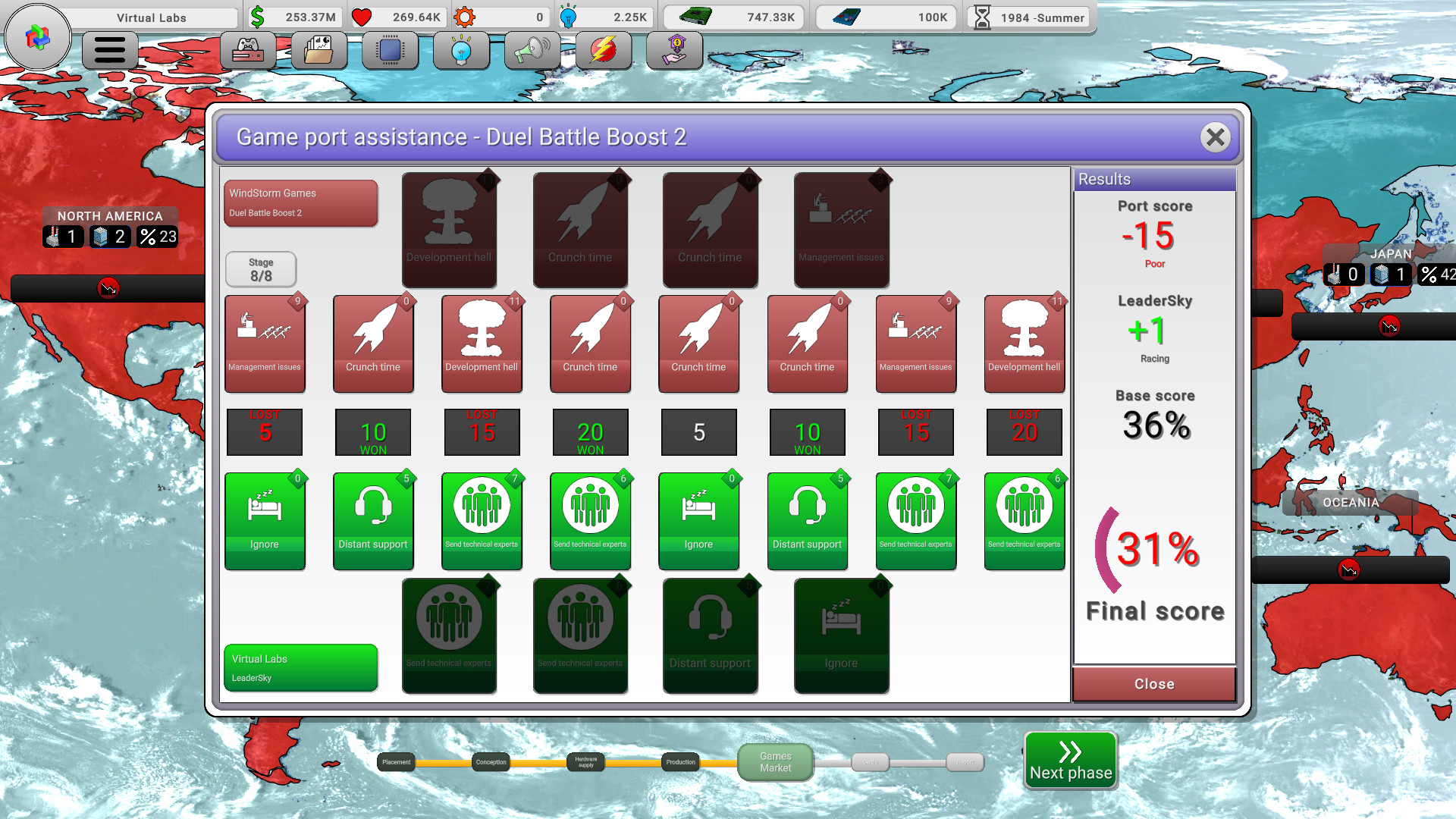 Console War Giant is a turn-based management game that puts you in charge of a young company producing video game consoles! The year is 1980, and the gaming industry is still in its infancy. A place under the sun is yours to claim!